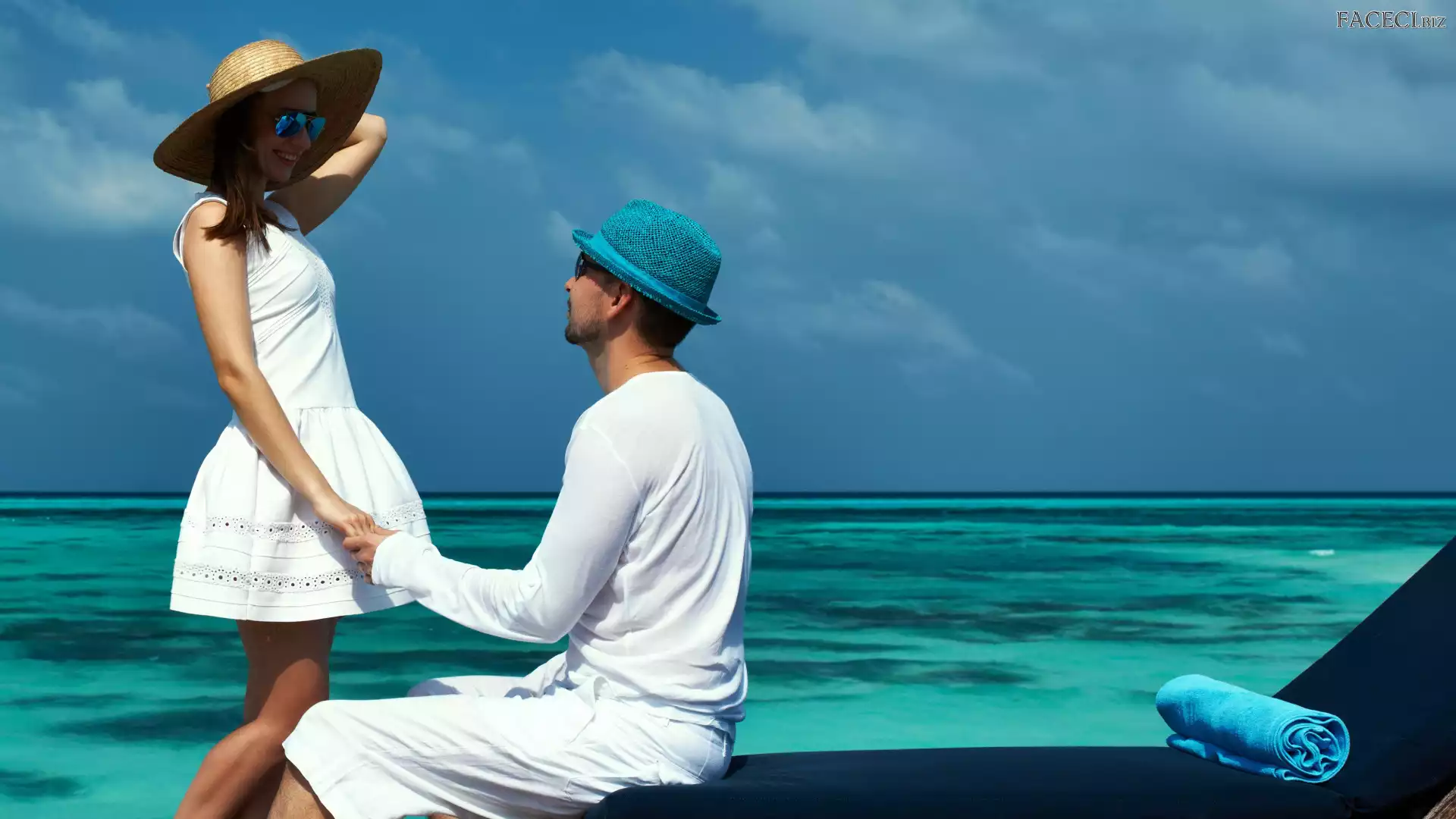 Mężczyzna, Morze, Kobieta, Kapelusz - faceci.biz